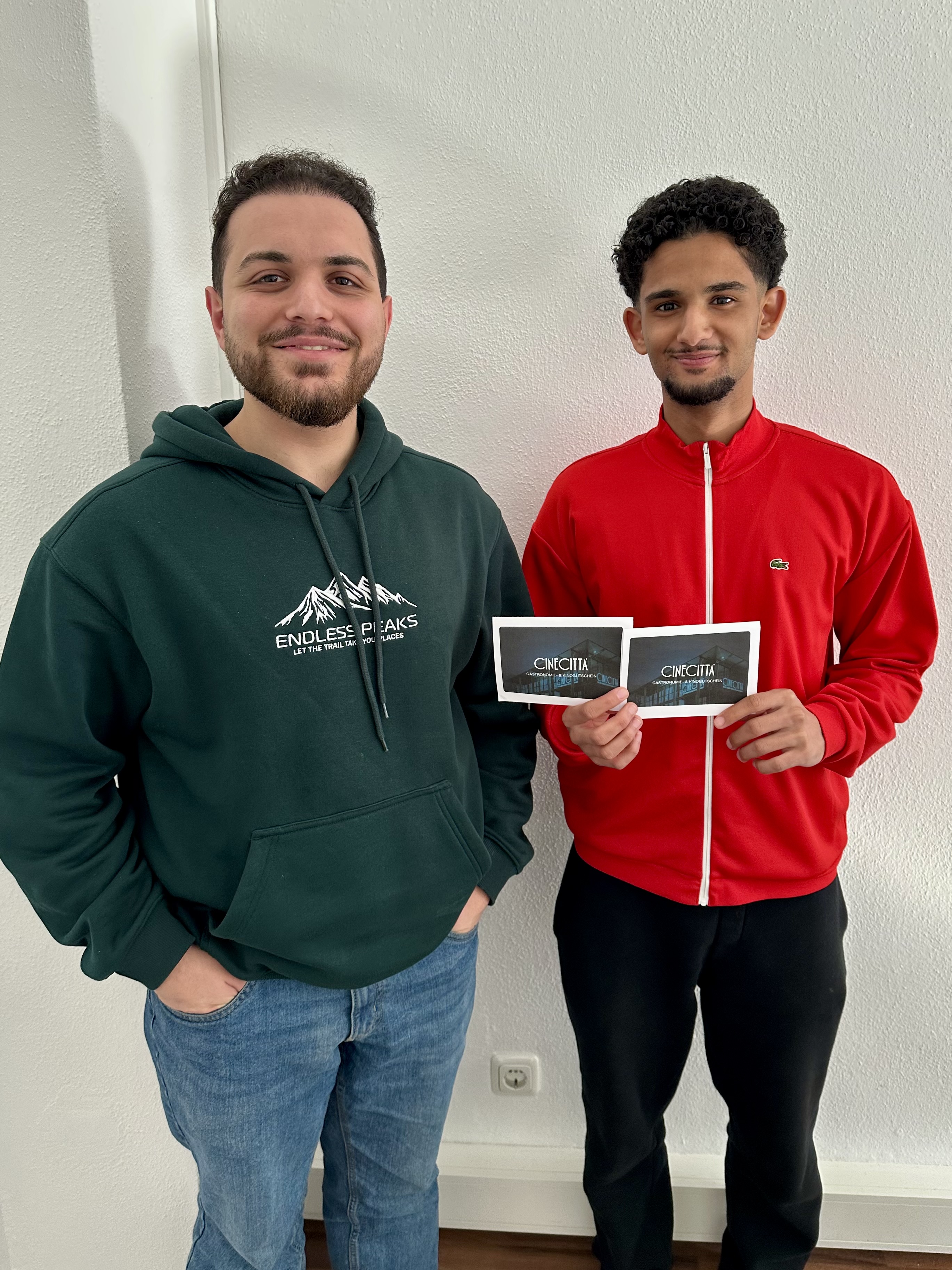 Ala (rechts im Bild mit Coach Mostafa) ist unser Schüler des Monats März dank seiner Leistungssteigerung im Fach Mathematik. Viel Spaß im Kino!